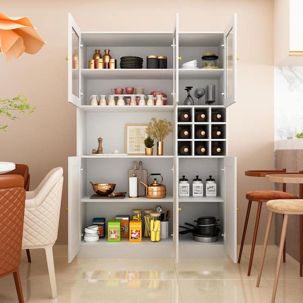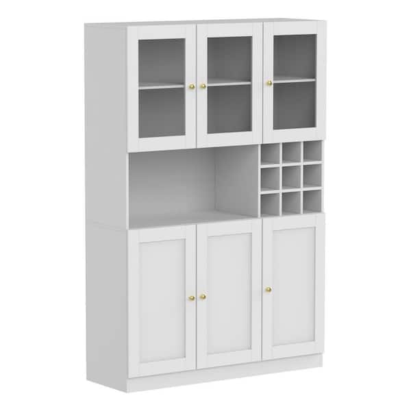 3-in-1 White Wood Kitchen Food Pantry Cabinet With Doors, Buffet and Hutch, Wine Rack (47.2 in. W x 70.9 in. H)