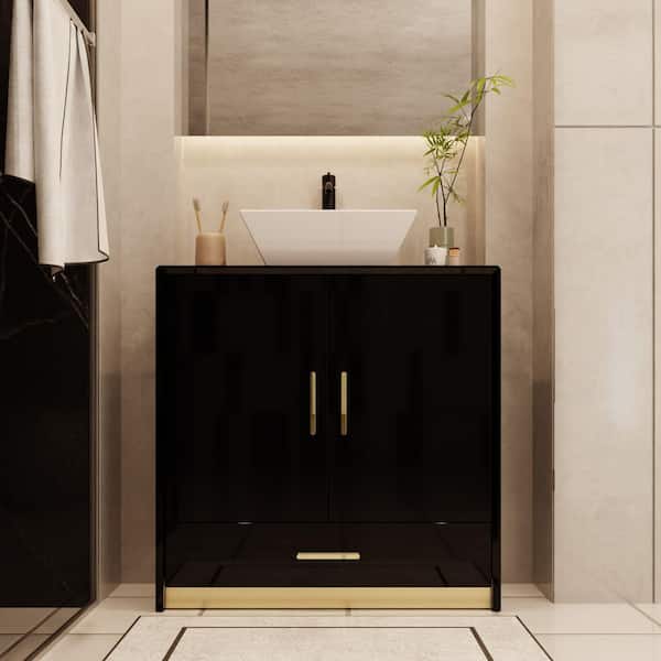 30 in. W x 18.9 in. D x 31.5 in. H Bath Vanity in Black with Marble Top, Bathroom Cabinet with 2 Doors & Drawer