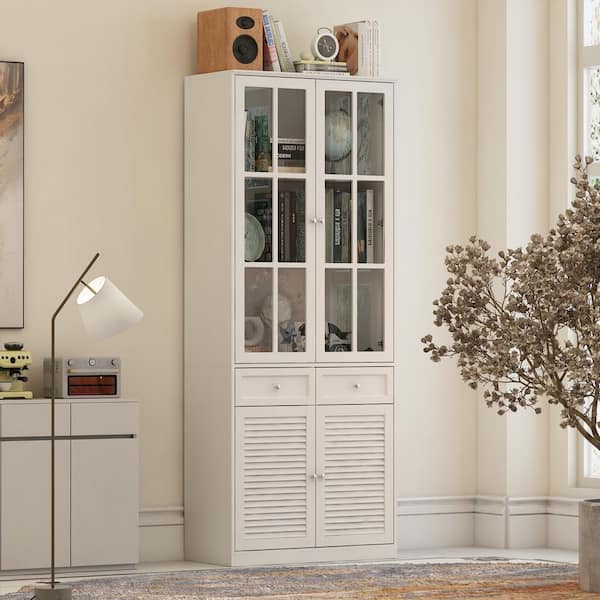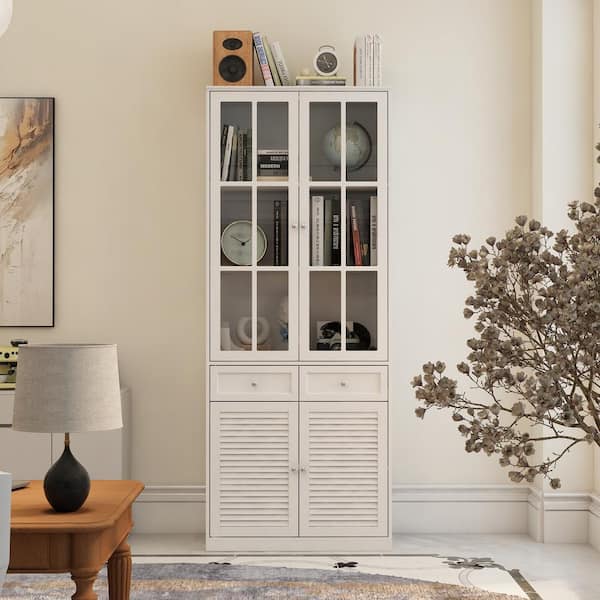 31.5 in. W x 78.7 in. H White Wooden 3 Display Shelves 2 Storage Shelf Bookcase, Computer Desk with 2-Drawer and 4 Doors