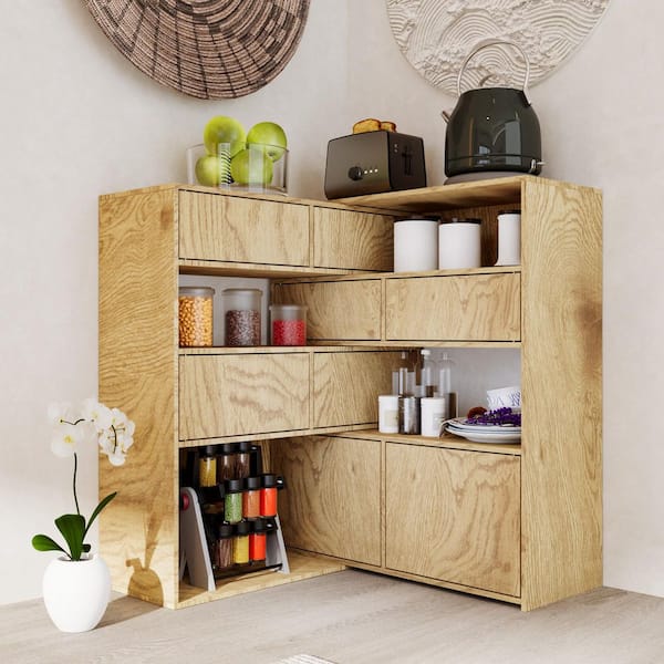 35.1 in. Tall Light Oak Wood 12-Shelf Modular Accent Bookcase with Convertible Corner-to-Straight Design