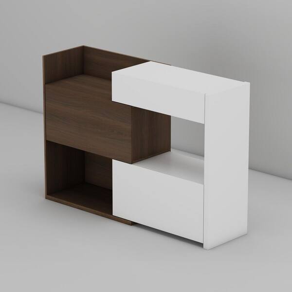 40.5 in. H x 58.4 in. W White and Brown Wooden Grain Wood Shoe Storage Cabinet 1-Drawer, 3-Open Shelf & 4 Shelf in Door