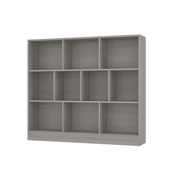 40.9 in. Tall x 47.2 in. W Gray Wood 10-Shelf Freestanding Standard Bookcase Display Bookshelf with Cubes