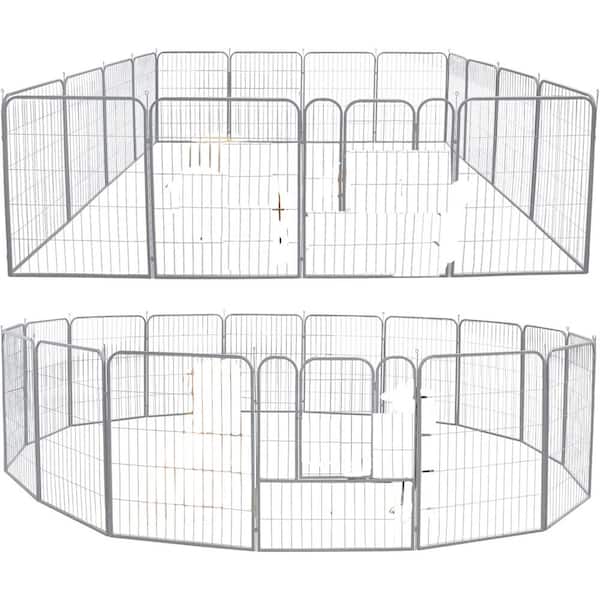 40 in. H Silver Dog Playpen Panels Pet Pen Portable Dog Fence with Door, Pet Exercise Playpen for Yard Camping 16 Panels