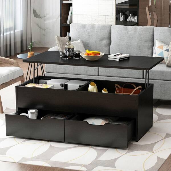 45.3 in. Black Rectangle MDF Wood Lift Top Coffee Table with Hidden Storage Shelf and 2-Drawers
