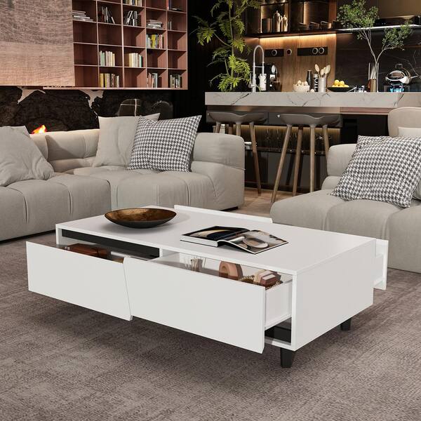 47.2 in. Length White Rectangle Wooden Coffee Table, Meeting Table, End Table with 4 Drawers
