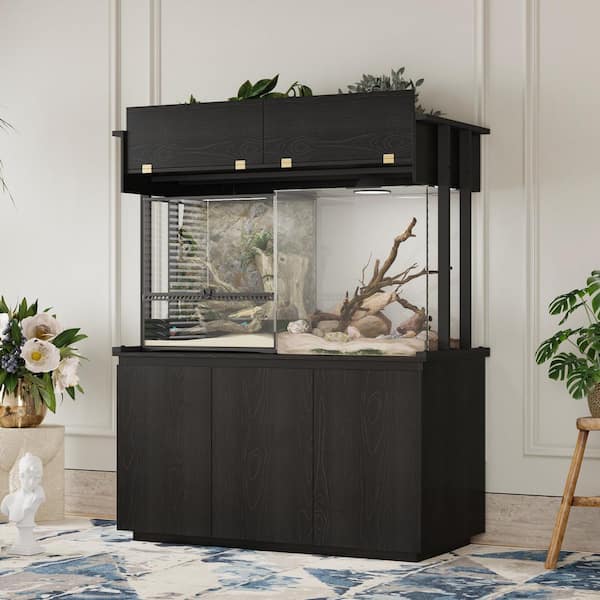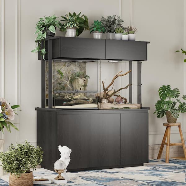 52 in. Wooden Hamster Cage and Reptile Terrarium Stand with Storage Cabinet, Small Animal Tank Holder, MDF andIron Frame