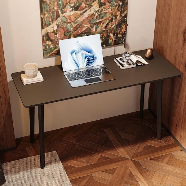 55 in. W Rectangle Black Wooden 2-Drawer Writing Desk, Computer Desk, Gaming Table, Vanity Table