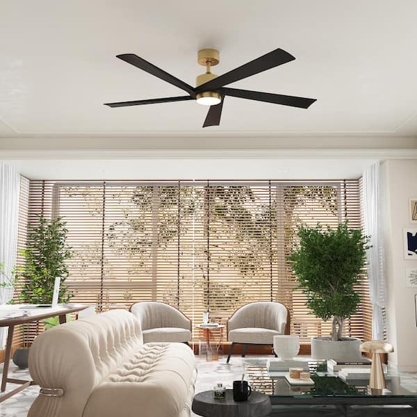 64 in. Integrated LED Indoor/Outdoor Ceiling Fan with Light Kit and Remote Control, 5-Blade Gold Housing Ceiling Fans