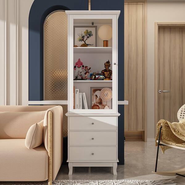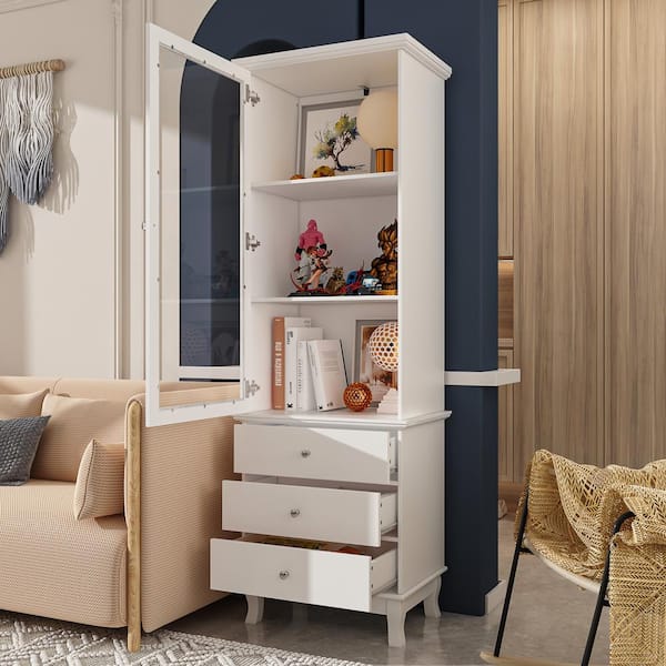 70.9 in. H Storage Cabinet Display Cabinet With Tempered Glass Doors, 3 Drawers and Adjustable Shelves