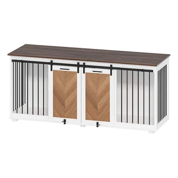 72.4 in. Large Dog Crates Kennel Furniture for 2 Medium or Large Dogs Indoor Wooden Dog Crate Furniture w/Sliding Door