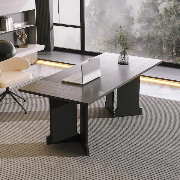 78.7 in. Rectangular Black Wood Modern Executive Desk, Computer Desk with Large Work Surface for Home Office