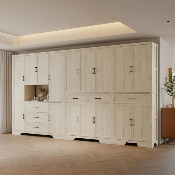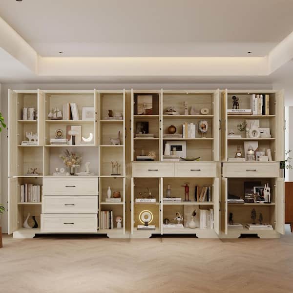 78.7 in. Tall Light Oak Wood 27-Shelf Wall Bookcase with Drawers, Anti-Tip Kit, Home Office, Living Room