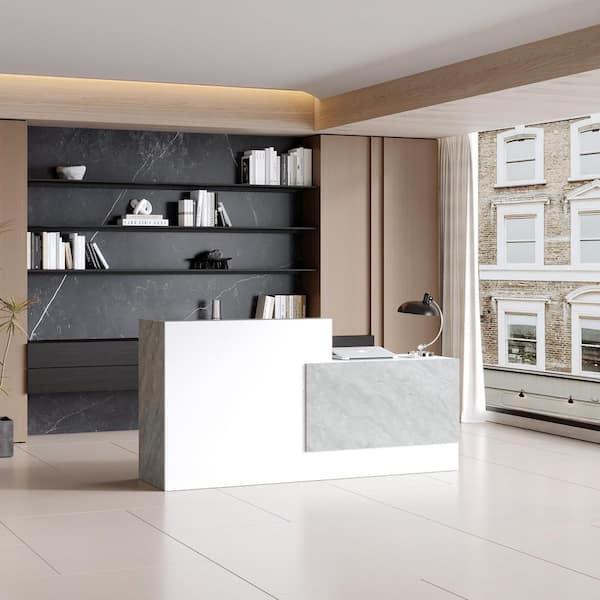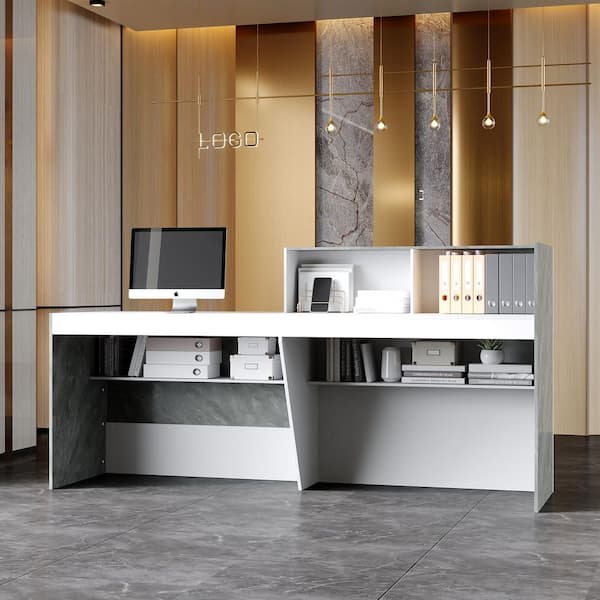 86.6 in. W Rectangle White Wooden No Drawer Computer Desk, Writing Desk with 4 Open Shelves for Home Office