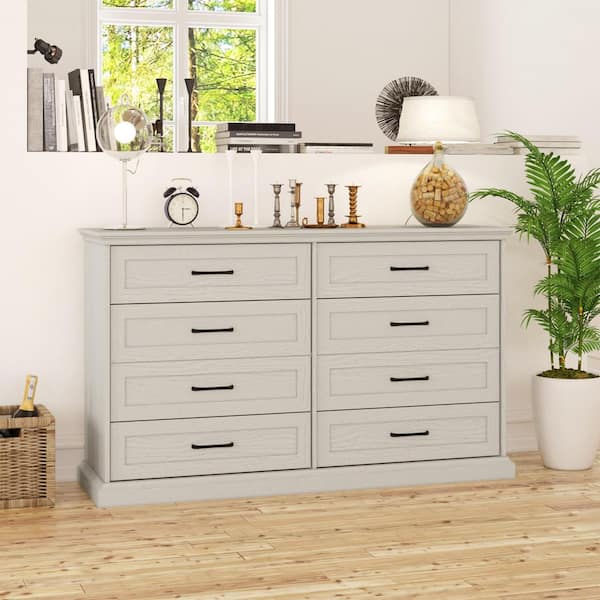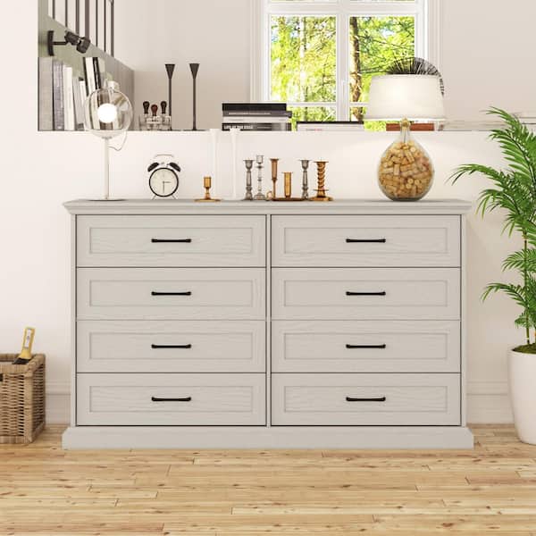 Beige Wood Grain 8-Drawer 54.6 in. Width x 33.1 in. Height Wooden Chest of Drawers, Dresser with Large Storage Space