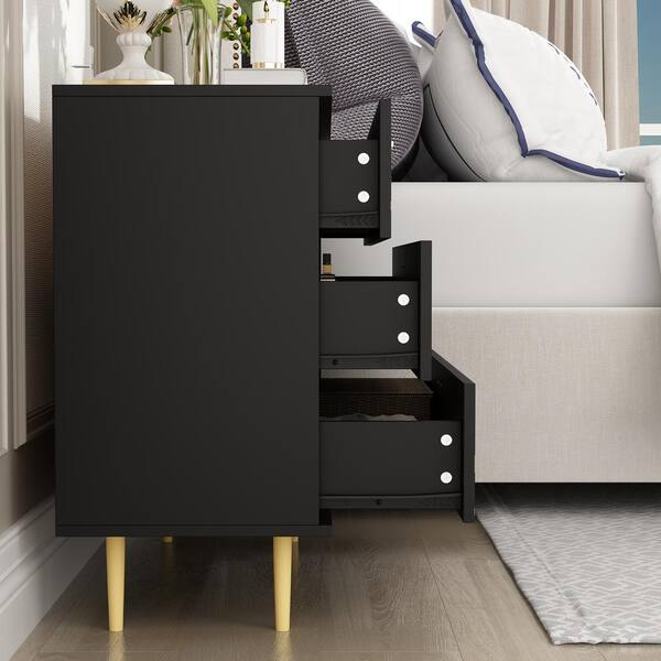 Black 3 Drawers 32.6 in. Width Chest of Drawers, Storage Cabinet, Side Table, Nightstand with Golden Pattern Decor