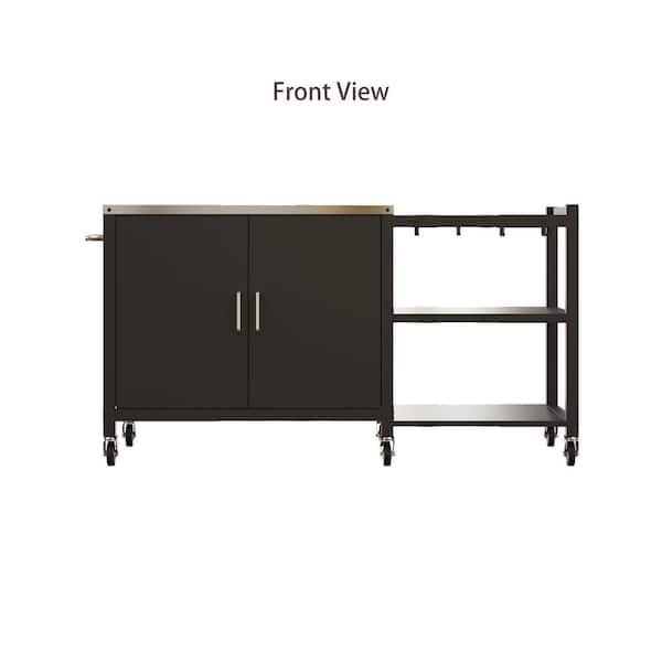 Black 60.8 in. Outdoor Kitchen Grill Cart with Stainless Steel Top-Mobile Island with Storage Cabinet and Shelves