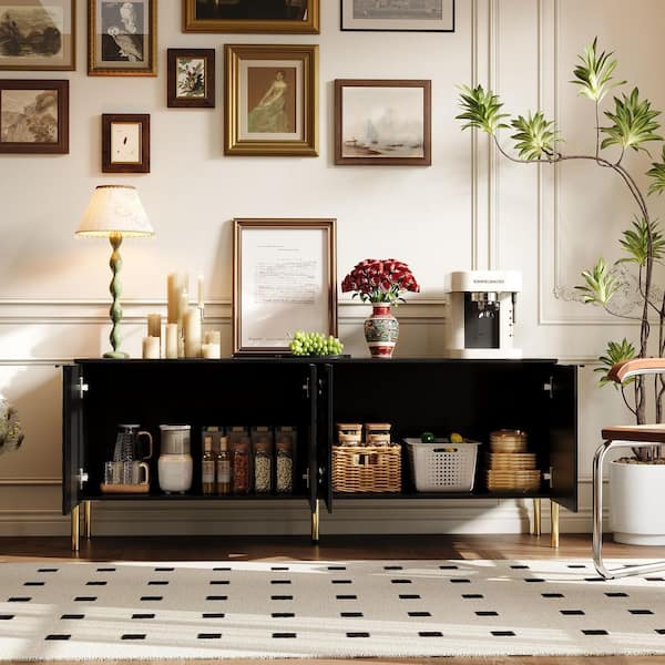 Black Entertainment Center Fits TVs up to 50 in. with 3D Textured Doors, TV Stand, Sideboard, Entryway Cabinet,