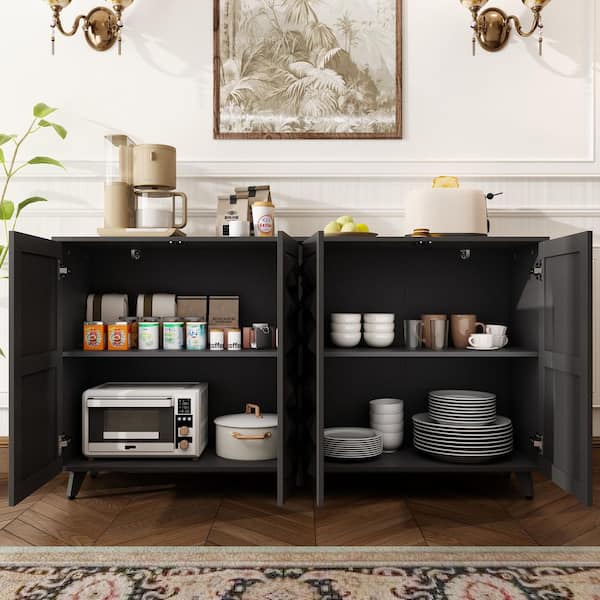 Black Wood 62.2 in. Sideboard with 3D Carved Doors, Modern Buffet Cabinet, Entryway Storage Cabinet