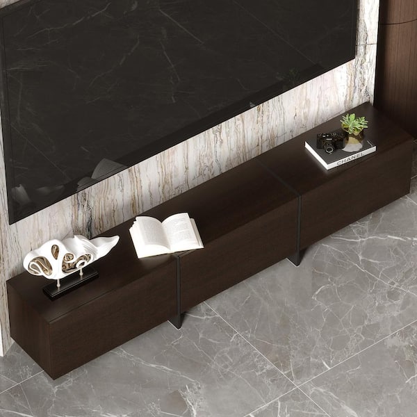Brown and Black Wooden TV Console Table, TV Stand, Entertainment Center Fits TV's up to 75 in. with 3-Doors, 3-Shelves