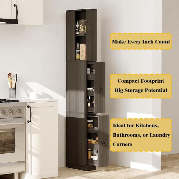 Charcoal Wood 72.8 in. Accent Cabinet with Shelves,Side Pull-Out Storage Drawers for Narrow Space,Sofa Side Organization