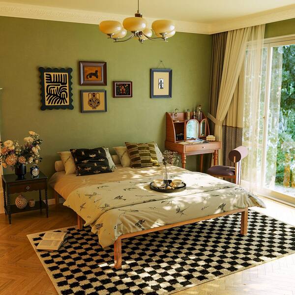 Classic Light Brown Wooden Queen Platform Bed Frame