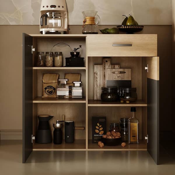 Dark Gray and Natural Wood 35. 4 in. Sideboard Buffet with 5-Shelves and 1-Drawers for Living Room or Kitchen