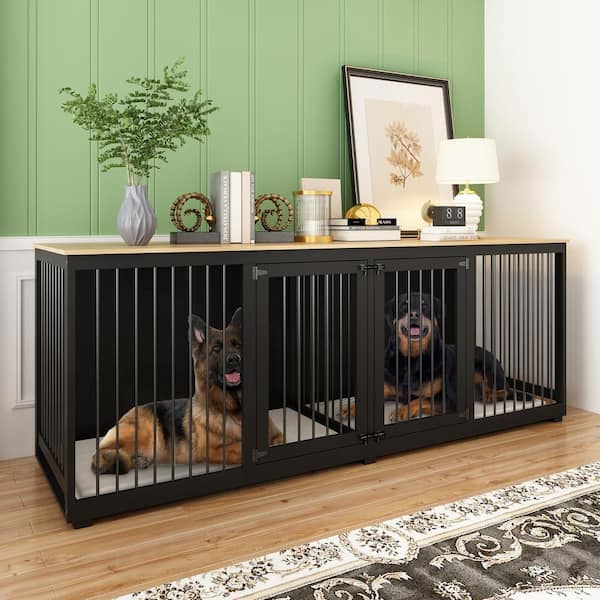 Extra Large Dog Crate Furniture for 2 Dogs, 94.5 in.Wooden Heavy-Duty Dog Crate Kennel with Divider for Dogs, Black