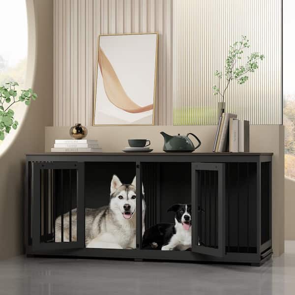 Heavy-Duty Wooden Dog Crate with Trays and Divider for 2 Dogs, XXL Large Dog Crate Furniture for Large Medium Dog, Black
