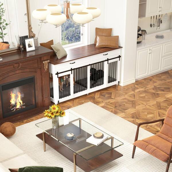 Large Furniture Style Dog Crate with Removable Irons, Dog Crate Furniture for Extra Large Dogs, Indestructible Dog Crate