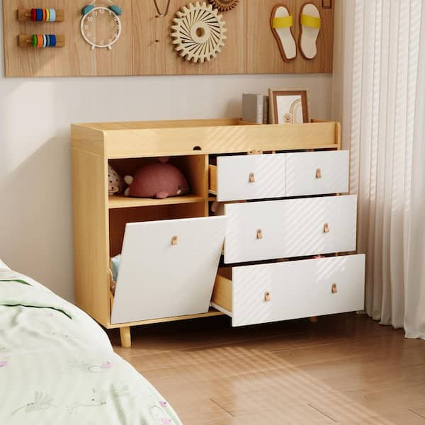 Light oak and White 5-Drawer 45 in. W Kids Dresser with Diaper Changing Table, Storage Cabinet with 5-Drawers