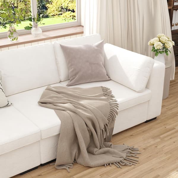 Modern 109.5 in. Straight Arm Matte Fabric Rectangle 4-Seat with Plush Cushions and 2-Armrest Pillows Sofa in White