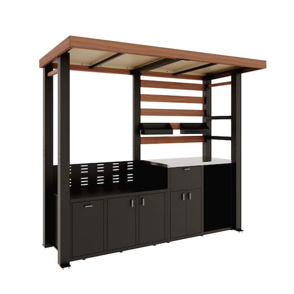 Outdoor Kitchen Series Natural Gas Modular Galvanized Steel Patio Grill Island with Stainless Steel Tabletop in Black