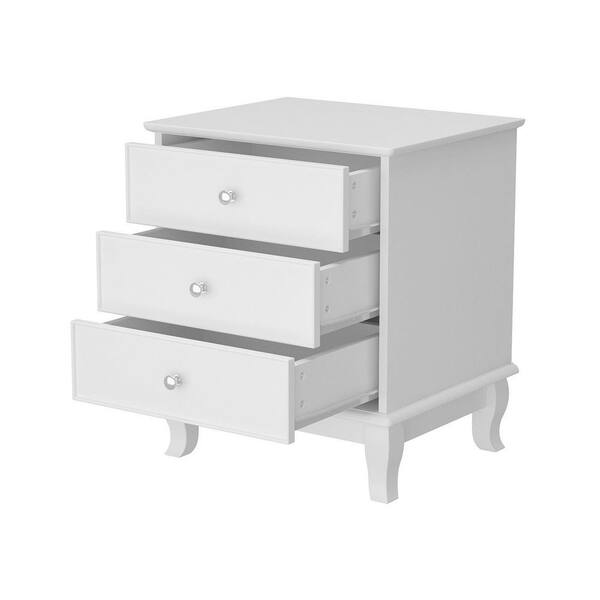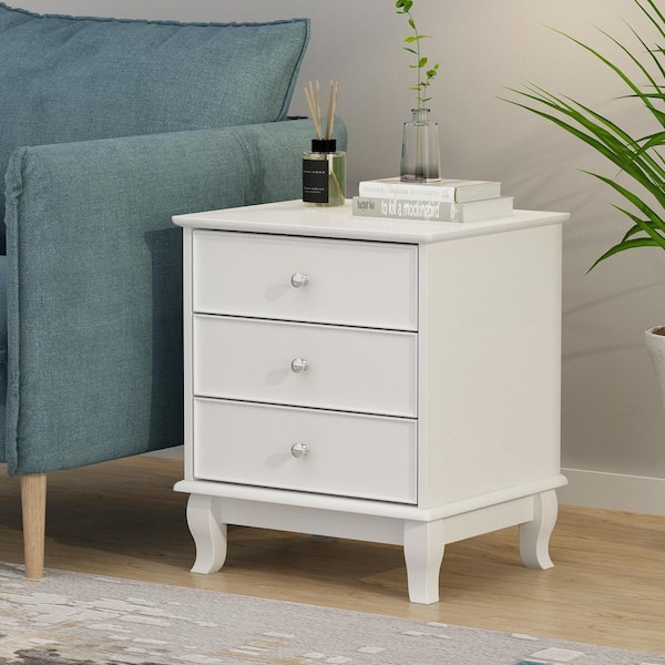 Single White Wooden Nightstand, End Table, Side Table with 3 Drawers, 18.9" Wx15.7"Dx22"H
