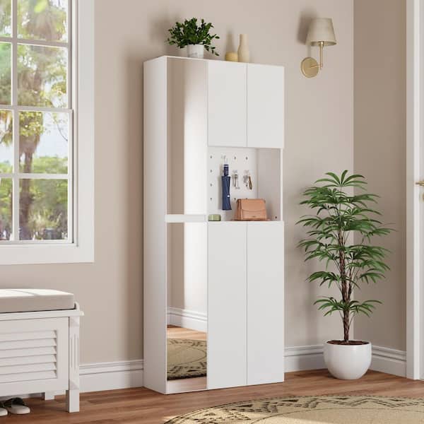White 70.9 in. H Accent Cabinet, Entryway Cabinet with Full-Length Mirror, Adjustable Shelves, Pegboard and Anti-Tip Kit