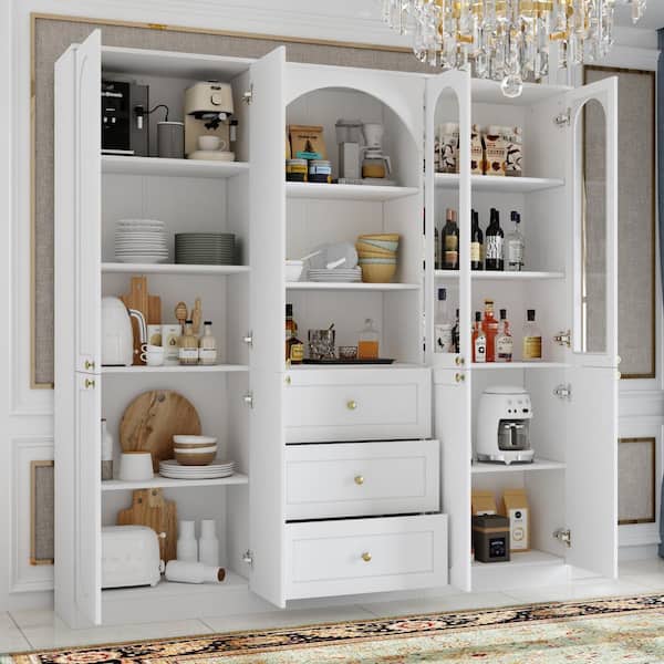 White 70.9 in. H Modern Storage Cabinet Sideboard with Tempered Glass Doors, Drawers