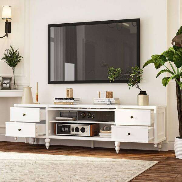 White TV Stand Fits TVs up to 70 in. with Decorative Glass Doors, 6 Drawers, Media Console, Entryway Sideboard