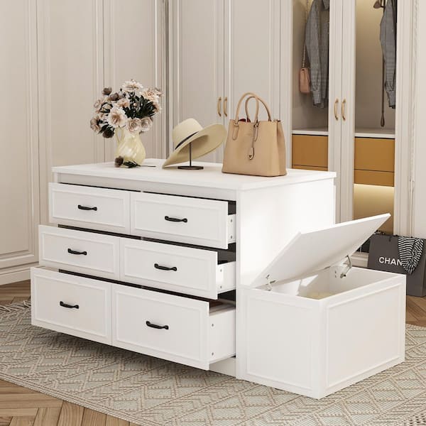 White Wood 12-Drawer 61.9 in. Chest of Drawers with Flip-Top Storage Bench, Ample Capacity for Bedroom or Closet Use