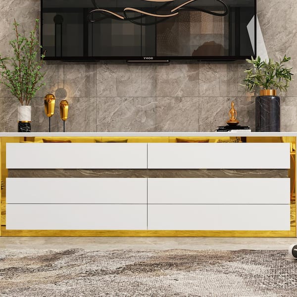 White Wood Finish 6-Drawer 68.9 in. x 15.7 in. x 23.6 in. Dresser, Wooden Chest of Drawers for Bedroom, Living Room
