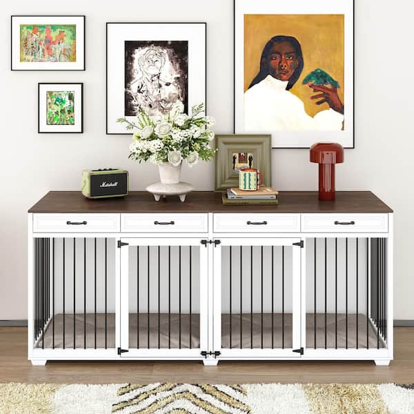 XXXL for 2 Large Dogs, Super Large Dog Crate Furniture, Indoor Wooden Dog House Kennel with 4-Drawers and Divider