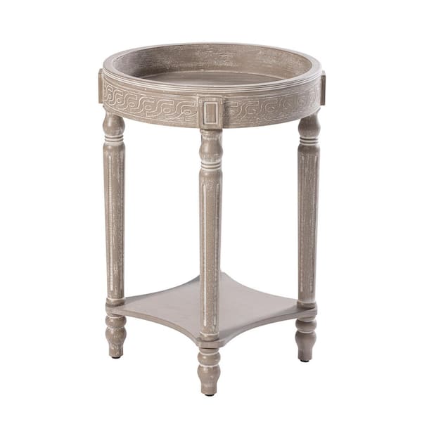 Farmhouse 18.11 in. Grey Round Wood End Table with Storage Shelf