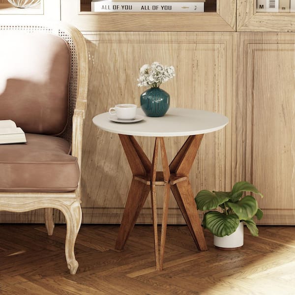 Farmhouse 23.62 in. Brown Round MDF End Table with Crisscross Legs and X Legs