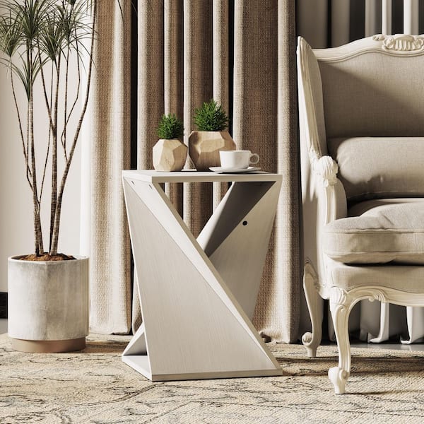 Modern 15.94 in. White Square Rubber Wood End Table with Twisted Design