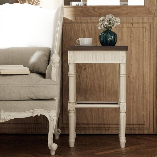 Rustic 13 in. White Rectangular MDF End Table with Espresso Tray Top and Woven Wicker Shelf
