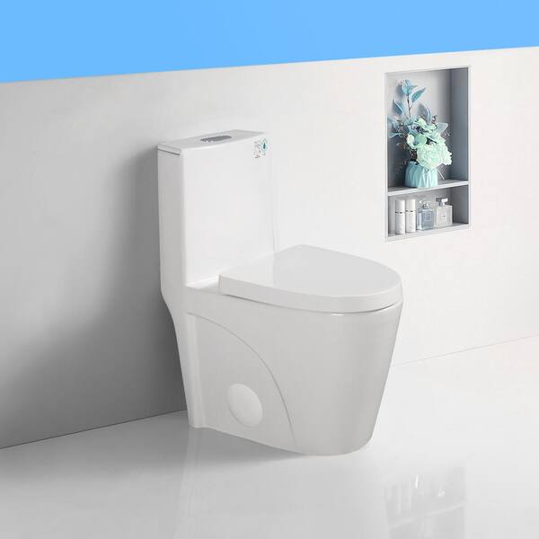 1-Piece 1.1/1.6 GPF Top Dual Flush Elongated Toilet in White with Soft-Closing Seat Included