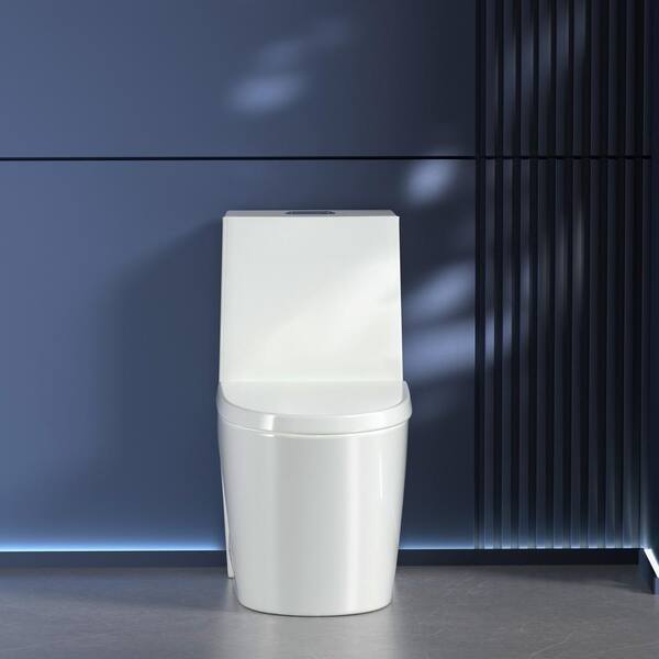 1-Piece 1.1 GPF/1.6 GPF High Efficiency Dual Flush Elongated Toilet in White with Slow-Close Seat