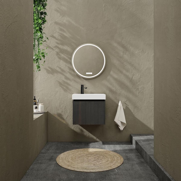 14 in. W x 24 in. D x 21 in. H 1-Sink Wall Mounted Bath Vanity in Black with White Resin Top