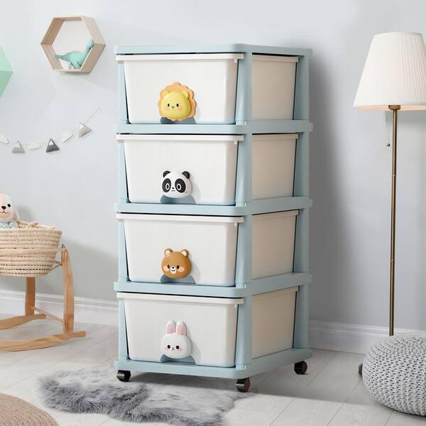 15 in. W x 13 in. D x 31 in. H in White Blue Plastic 4 Layer Floor Drawer Base Storage Cabinet, Wheels Ready to Assemble