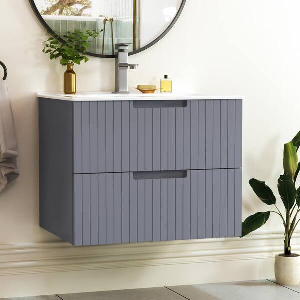 18.25 in. W. x 24 in. D x 19.25 in. H 1 Sink Wall Mounted Bath Vanity in Gray with White Ceramic Top and 2 Drawers