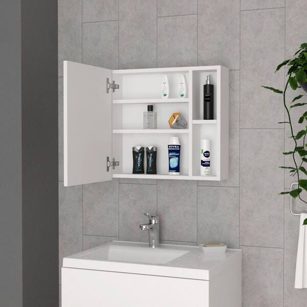 19.6 in. W x 5.5 in. D x 18.6 in. H rectangular Single Door Medicine Cabinet with Mirror, 5-Shelves, White