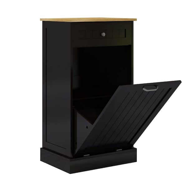 20 in Single Compartment Tilting Black Kitchen Trash Cabinet with 1 Drawer